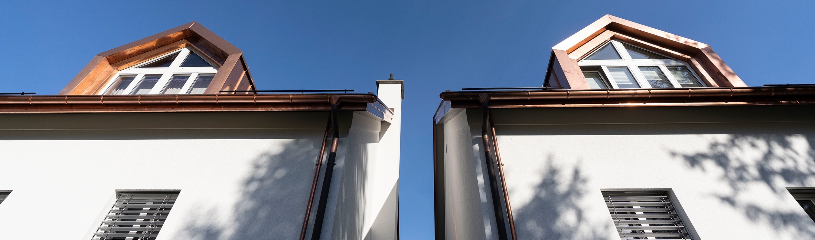 Das Dach erhielt eine zeitgemässe Dämmung auf neustem energetischem Stand, wodurch Fördergelder beantragt werden konnten. Auch die Gauben wurden mit zusätzlicher Dämmung aufgedoppelt und die Unterkonstruktion neu aufgebaut, sodass der Spengler anschliessend eine hochwertige Kupferstehfalzeindeckung montieren konnte.
